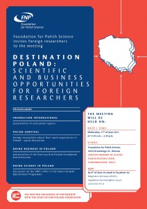 Fundacja na rzecz Nauki Polskiej zaprasza naukowców z zagranicy na spotkanie pt. ?Destination Poland. Scientific and Business Opportunities for Foreign Researchers?.Celem spotkania jest zachęcenie zagranicznych naukowców do kontynuowania (lub rozpoczęcia) pracy naukowej w Polsce, a także do...